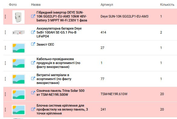 1. Основні параметри системи (потужність, тип панелей, інверторів та акумуляторів)